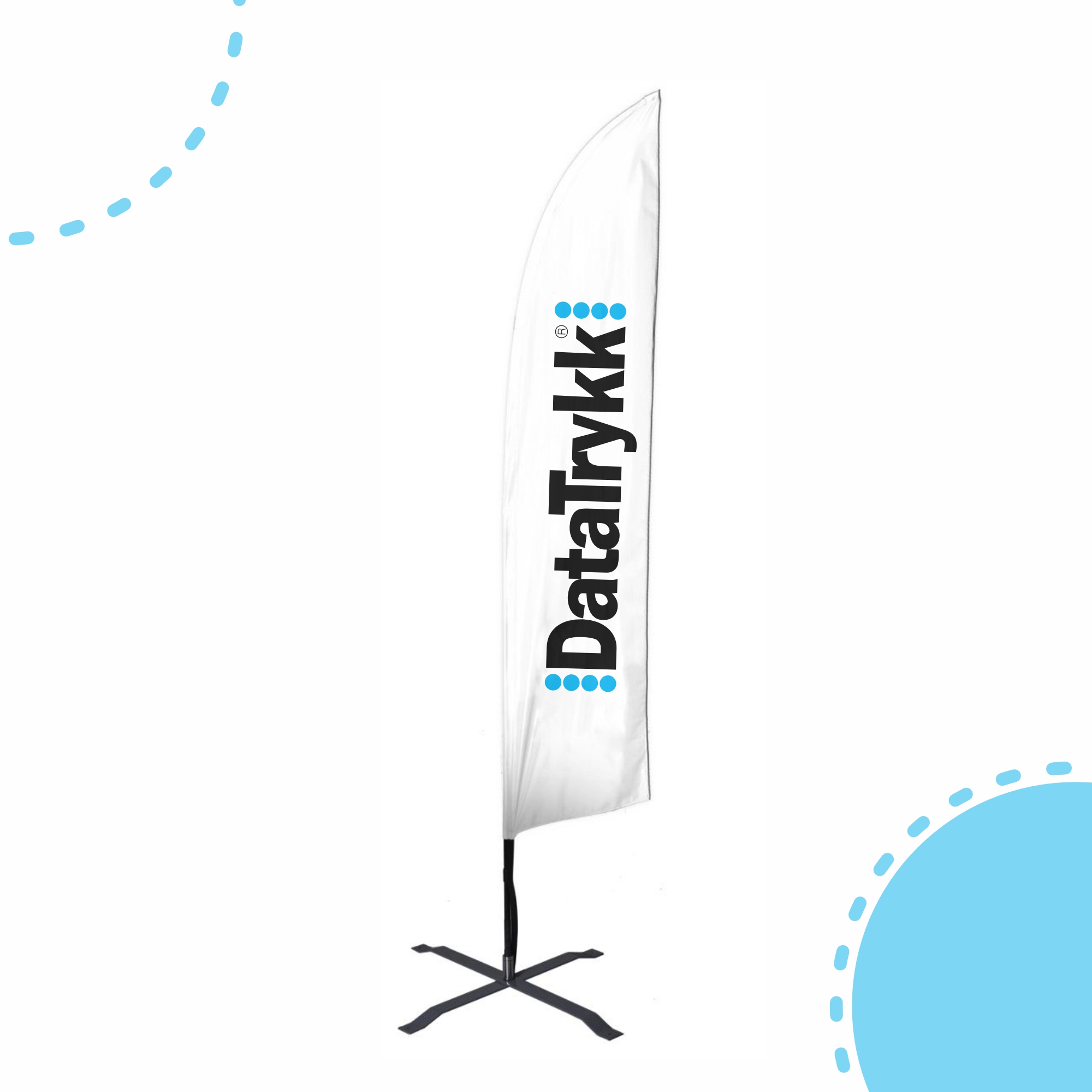 Beachflagg leveres i standardstørrelser og standardformat. En praktisk bæreveske for transport og oppbevaring følger med. Våre beachflagg trykkes på nøye utvalgte materiale og med moderne trykkteknikk for høyest mulig kvalitet.